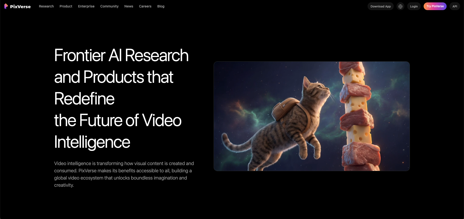 PixVerse is a frontier AI research and product platform that redefines the future of video intelligence. By building a global video ecosystem, PixVerse makes advanced video generation accessible to everyone, unlocking boundless imagination and creativity through high-fidelity, multimodal modeling.